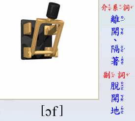 - [介係詞] 離開, 隔著.