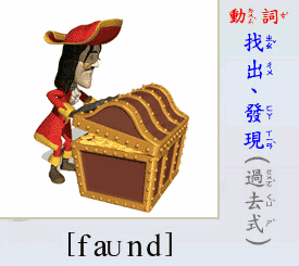 - [動 詞] 找出, 找到, 發現. (find 的過去式與過去分詞)