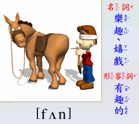 - [名 詞] 樂趣, 娛樂, 嬉戲.