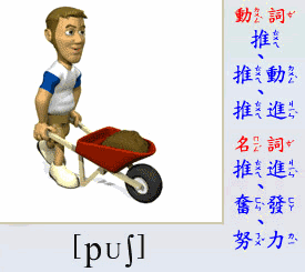 - 為了使車子發動, 他們推了它一下. (他們用推動車子的方式來使車子發動.)