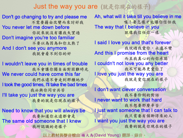 歌唱 (楊大為) 第 035 曲: Just The Way You Are (就是你現在的樣子)