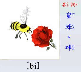 - [名 詞]  蜜蜂, 蜂. (複數為 bees)