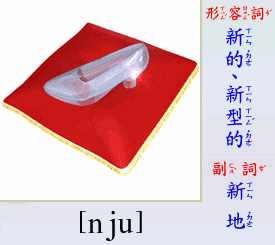 - [形容詞] 新的, 新型的, 沒有經驗的, 陌生的.