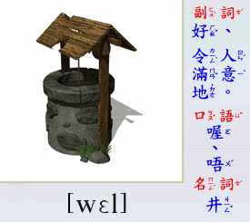- [[名 詞]  井, (裝墨水等的)罐子或容器, 泉水.