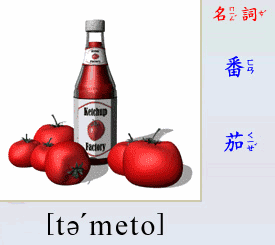 - [名 詞] 番茄, 西紅柿.