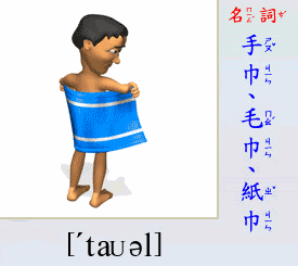 - [名 詞] 手巾, 毛巾, 紙巾.