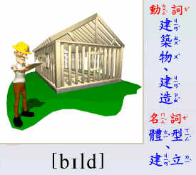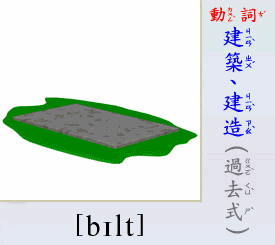 - [動 詞]  建築, 建造. (build 的過去式與過去分詞)