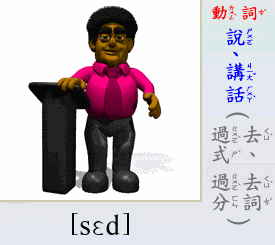 - [動 詞] 說, 講. (say 的過去式與過去分詞)