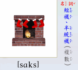 - [名 詞] 短襪, 半統襪. (sock 的複數)