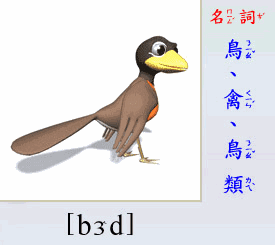 - [名 詞] 鳥, 禽, 羽毛球.