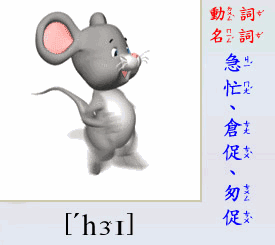 - [動 詞]  急忙, 倉促, 匆促, 趕快.