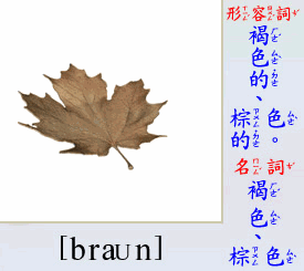 - [名 詞] 褐色, 棕色, 咖啡色.