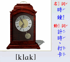 - [名 詞] 時鐘, (汽車等的)里程計.