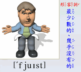 - [形容詞] 最少數的, 幾乎沒有的. (few 的最高級)