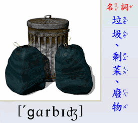 - [名 詞] 垃圾, 剩菜, 廢物.