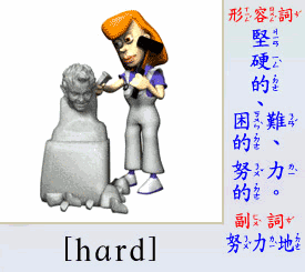 - [形容詞] 堅硬的, 困難的, 努力的, 辛苦的.
