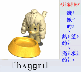 - [形容詞]  飢餓的, 熱望的, 渴求的.