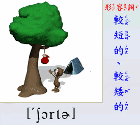 - [形容詞] 較短的, 較矮的. (short 的比較級)
