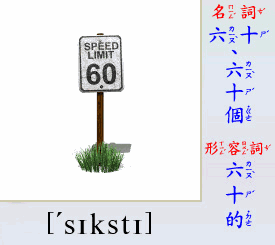 - [名 詞] 六十, 六十個, 六十歲, 六十年代.