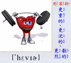 - [形容詞] 更重的, 更沈的, 更劇烈的. (heavy 的比較級)