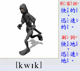 - [形容詞] 快的, 迅速的, 伶俐的.