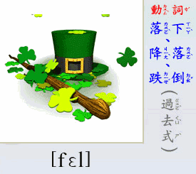 - [動 詞] 落下, 降落, 跌倒. (fall 的過去式)