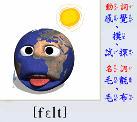 - [動 詞] 感覺, 摸, 觸, 試探. (feel 的過去式與過去分詞)