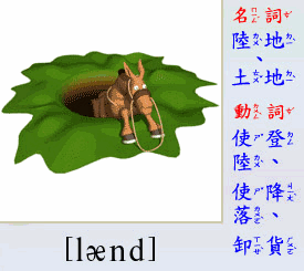 - [動 詞] 使登陸, 使降落, 使下車, 卸貨. (過去式與過去分詞為 landed)