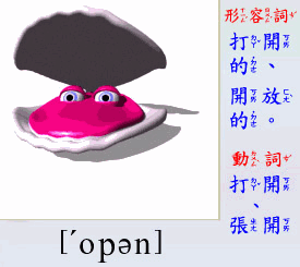 - [形容詞] 打開的, 開闊的, 公開的, 開放的.