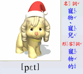 - [名 詞] 寵物, 寵兒, 寶貝.