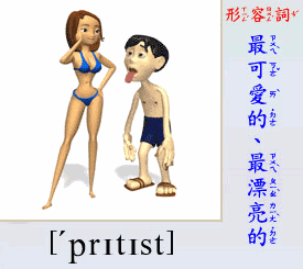 - [形容詞] 最可愛的, 最漂亮的. (pretty 的最高級)