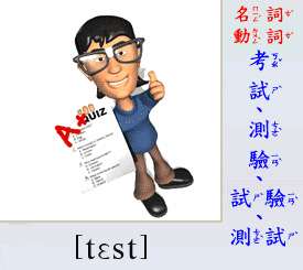 - [名 詞] 考試, 測驗.