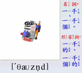 - [形容詞] 一千的, 一千個的, 無數的.