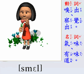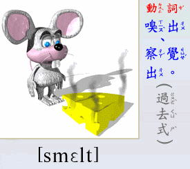 - [動 詞] 嗅出, 察覺出. (smell 的過去式與過去分詞)