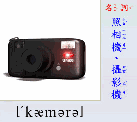 - [名 詞]  照相機, 電視攝像機, 電影攝影機.