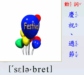 - [動 詞]  慶祝, 過節.
