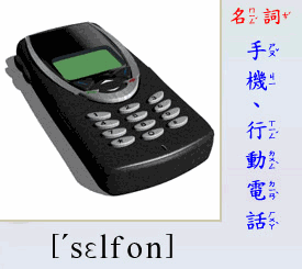 - [名 詞]  手機, 行動電話.