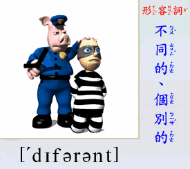 - [形容詞]  不同的, 個別的, 有差別的.