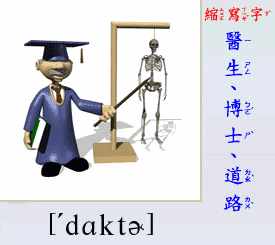 - [縮寫字] = Doctor (醫生, 博士.), Drive (道路)