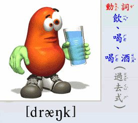 - [動 詞] 飲, 喝, 喝酒, 酗酒. (drink 的過去式)