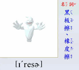 - [名 詞] 擦除器 (如黑板擦, 橡皮擦等).